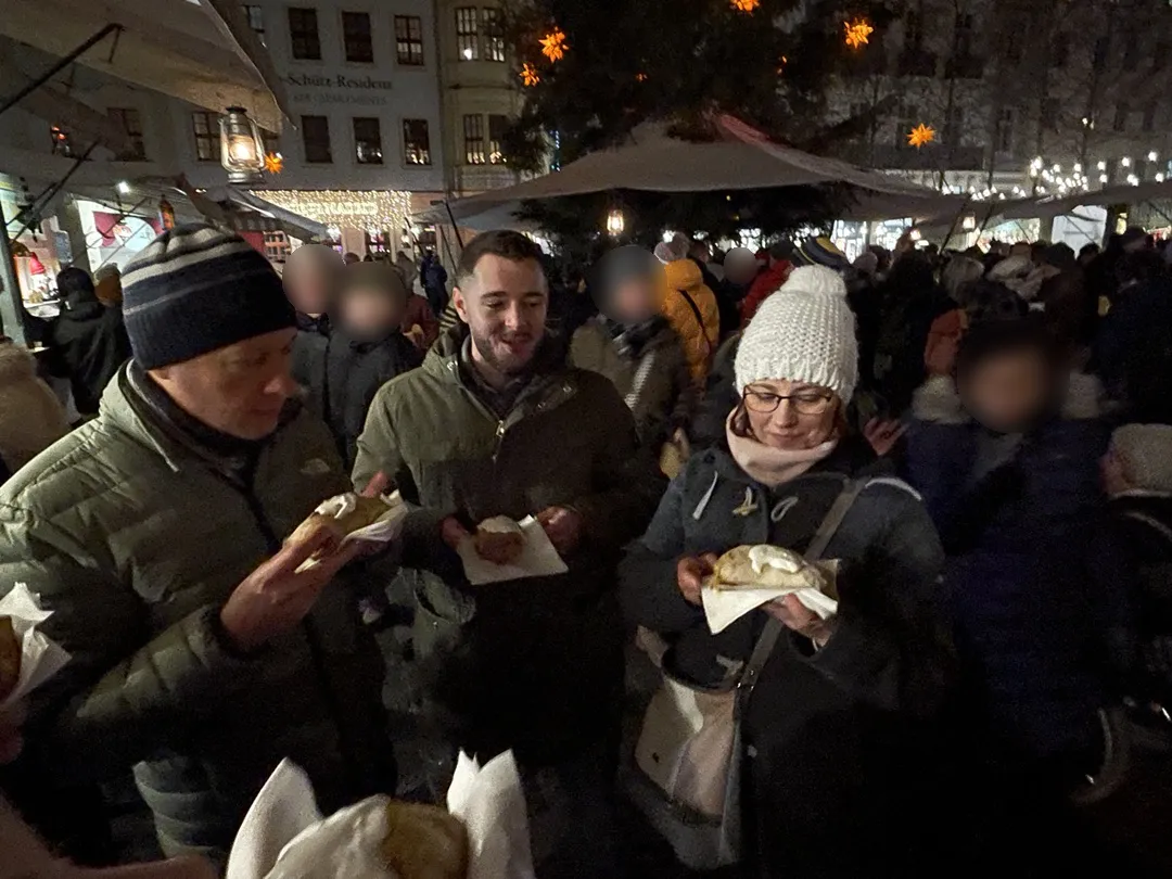 Nach der actiongeladenen Mission haben wir den Turbo rausgenommen und sind gemütlich über den Weihnachtsmarkt an der Frauenkirche geschlendert. Mit einem Glühwein in der Hand und leckerem Handbrot als Verpflegung haben wir einfach gequatscht, gelacht, gelacht – und noch ein bisschen mehr gelacht und den Abend zusammen genossen. Einfach Abhängen, Schnacken, Weihnachtsmarkt genießen, so wie es sein sollte.